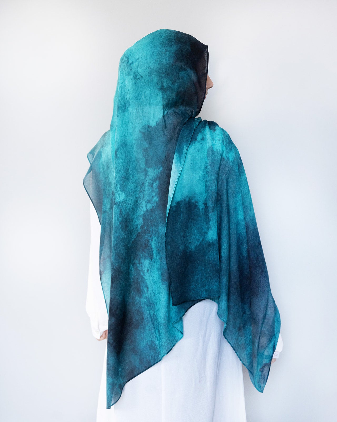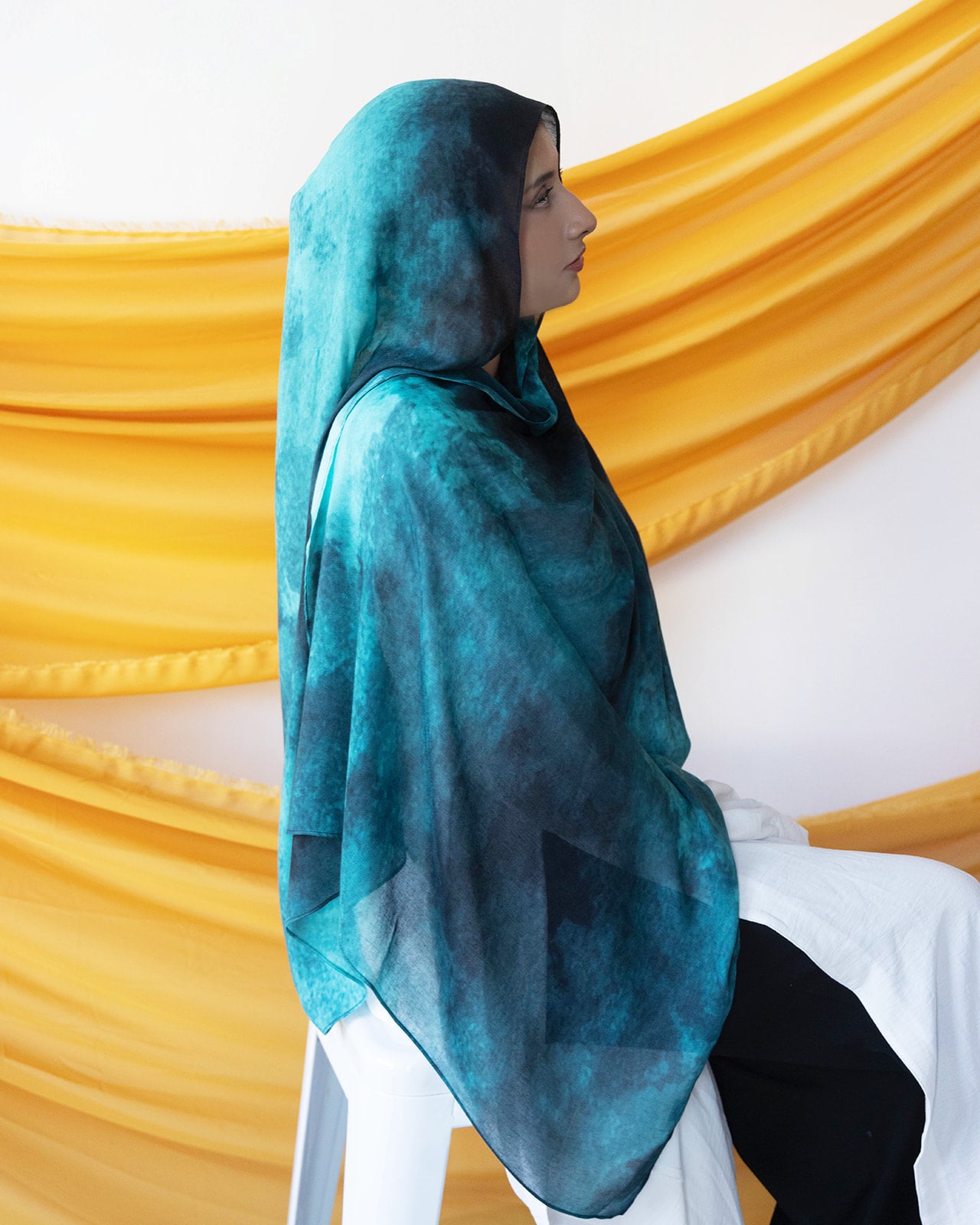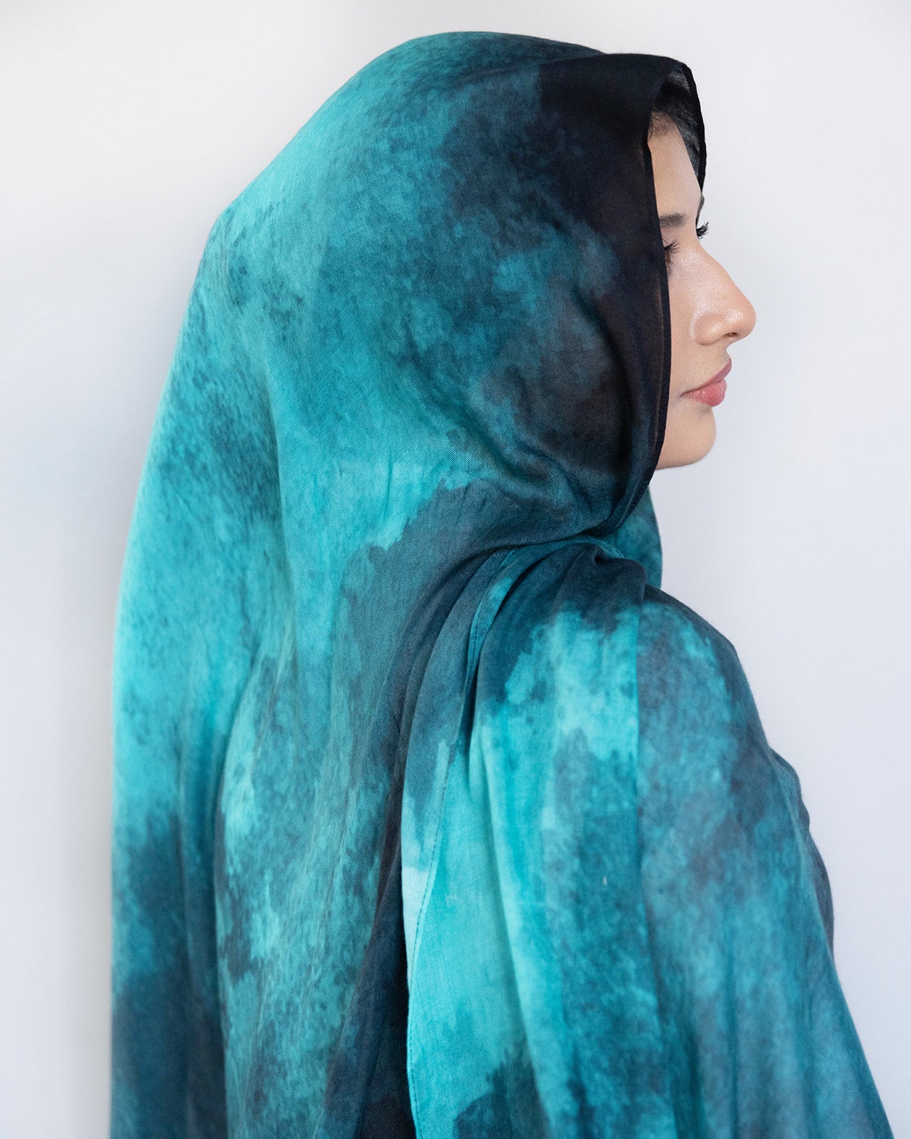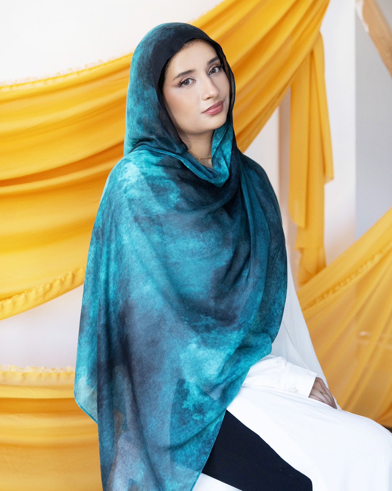 Midnight Lagoon is elegance with depth and allure. Crafted from ultra-soft modal fabric, it drapes effortlessly while staying breathable and comfortable. With its striking blend of teal-green and deep black tones, this hijab reflects the mystery of moonlit waters, perfect for evenings, gatherings, and elevated everyday wear.